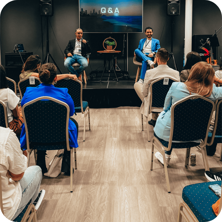 Um evento presencial, em português, com Raul Engel & André Garcia para quem está pronto (ou quase pronto) para investir.